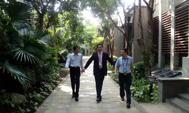 4月10日,揚州市市長朱民陽在參加博鰲亞洲論壇2014年年會期間,在建工控股、江蘇華建董事長陸金龍陪同下視察了華建海南分公司博鰲香檳郡項目,并聽取了華建副總經理、海南分公司總經理王宏的工作匯報。朱市長對華建在海南的發展狀況和取得的業績給予了充分肯定,并鼓勵華建在海南建筑市場進一步做大、做強、做優、做久,繼續保持鰲頭地位。