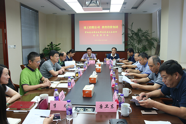 8月15日下午,王宏董事長帶領建工控股公司在揚領導、相關部門負責人赴教育投資集團,圍繞貫徹落實全市國企改革發展座談會精神進行學習交流。教投集團周翔董事長等領導熱情接洽。