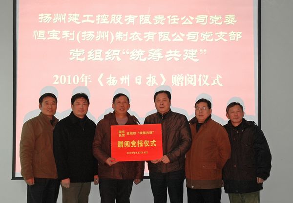 系統黨委向統籌共建單位贈閱黨刊 時間:2009-12-226272 12月18日,建控公司黨委積極與外資企業恒寶利(揚州)公司黨支部開展國有民營黨組織“統籌共建”活動,向其贈閱了2010年《揚州日報》以及《黨章》等黨報黨刊學習資料,并與團員青年、入黨積極分子開展座談互動交流。