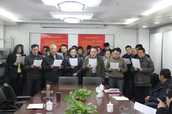 地產公司總經理徐剛代表地產全體員工表態:公司經營層要以身作則、弘揚正氣,健全各項規章制度,切實把廉政建設融入到公司發展的具體實踐中。通過學習,地產板塊全體員工接受了一次廉政教育,進一步提高了廉潔從業的思想認識,增強了廉潔從業的自覺性。